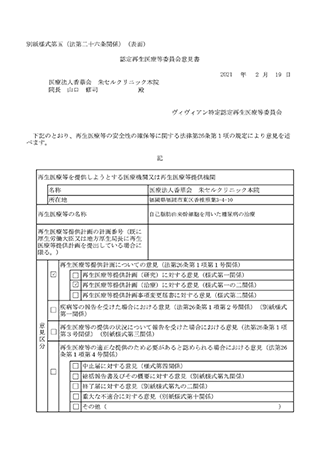 リボーンクリニックは厚生労働省に第二種・第三種再生医療等提供計画を提出し、計画番号を取得した医療機関です。